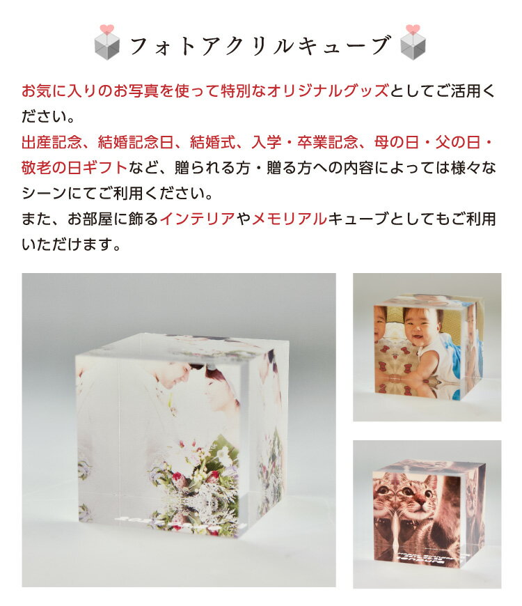 【写真で作る アクリルキューブ】アクリル フォト 写真 名入れ フォトフレーム フォトブロック オリジナル プレゼント ペット メモリアル 記念品 敬老の日 ギフト 内祝い 出産祝い 結婚祝い ウエディング 両親 ベビー インテリア プチギフト