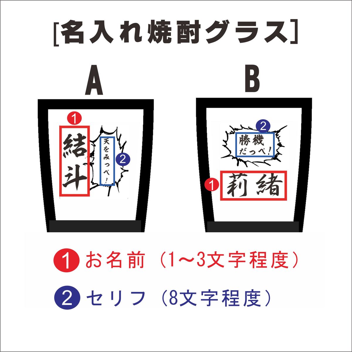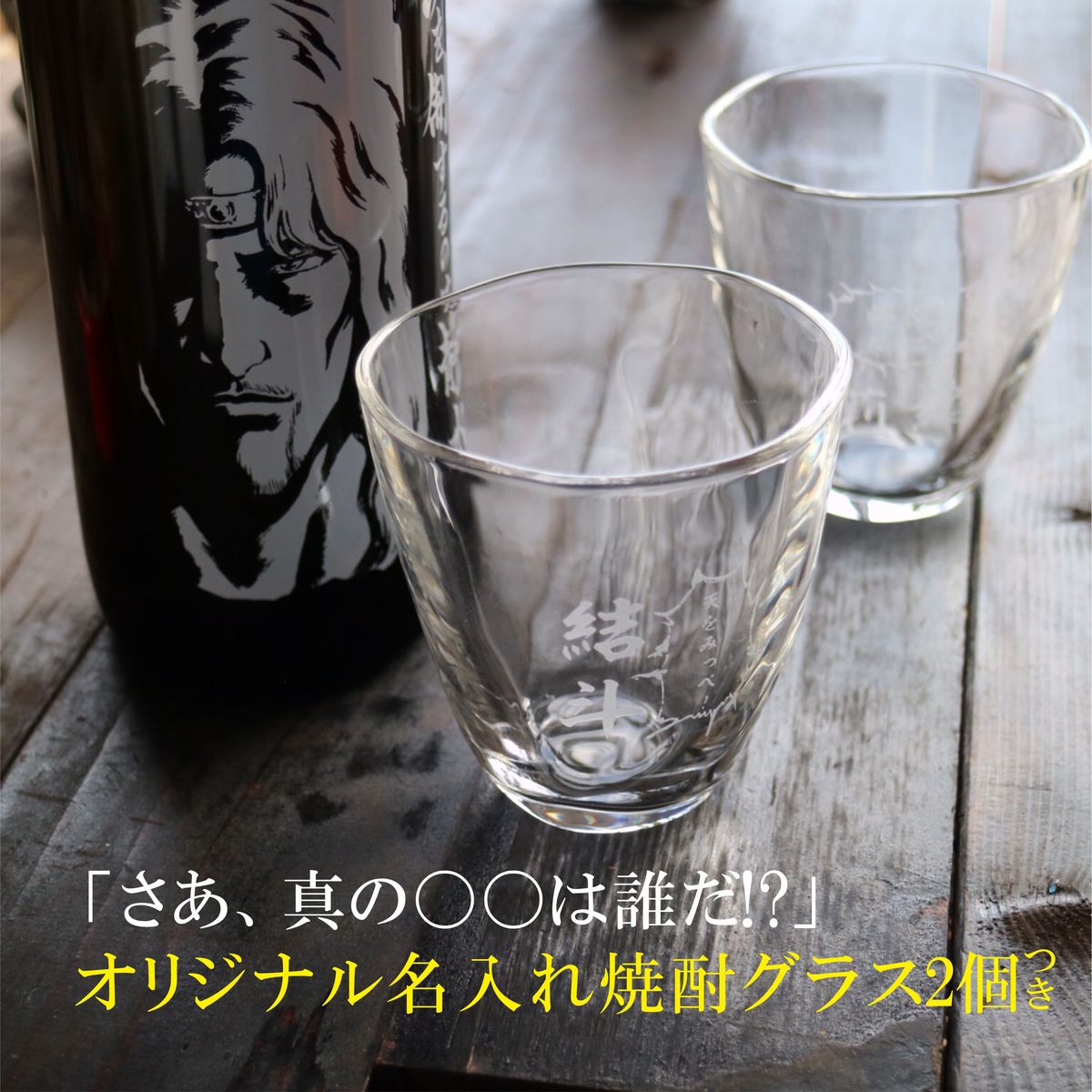 こちらの本格焼酎に当工房にて名入れと台詞を施した特製焼酎グラスを2個セットしての販売になります。