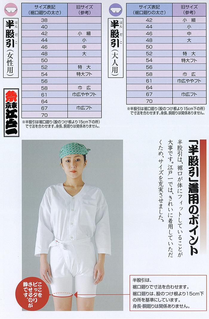 【江戸一】半股引(はんだこ)38〜56サイズ 晒厚織 綿100% 白 大人用&女性用