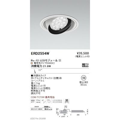 ERD6785W 遠藤照明 リプレイスユニバーサルDL 900タイプ 3500K 中角【電源ユニット別売】