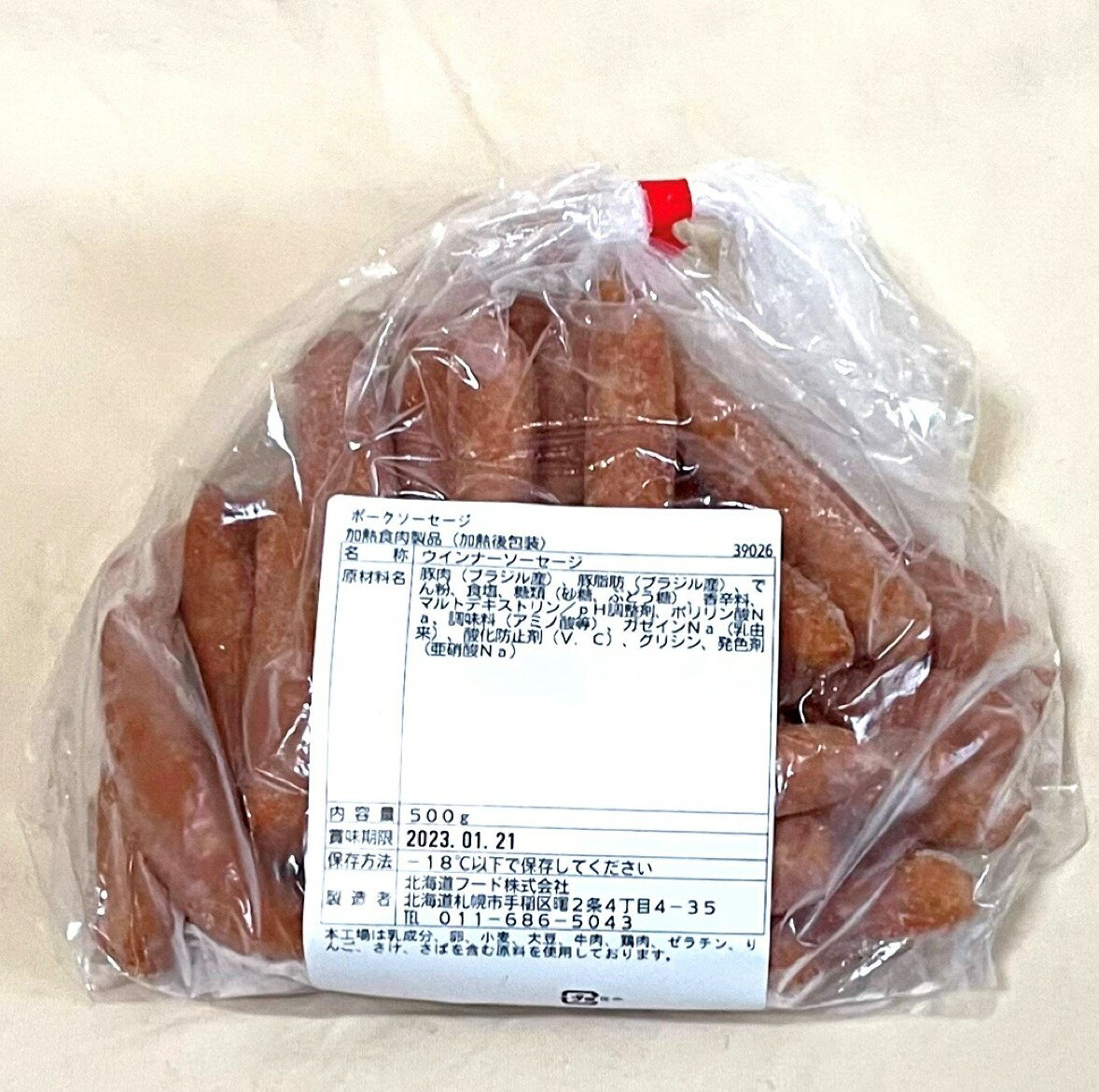 内容量 500g 原材料名 原材料/添加物 豚肉(ブラジル産)、豚脂肪(ブラジル産)、でん粉、食塩、糖類(砂糖、ぶどう糖)、香辛料、マルトデキストリン/pH調整剤、ポリリン酸Na、調味料(アミノ酸等)、カゼインNa(乳由来)、酸化防止剤(V.C)、グリシン、発色剤(亜硝酸Na) 原産地 ブラジル 賞味期限 2023/01/21 保存方法 要冷凍(‐18℃以下)こちらのページは単品です。