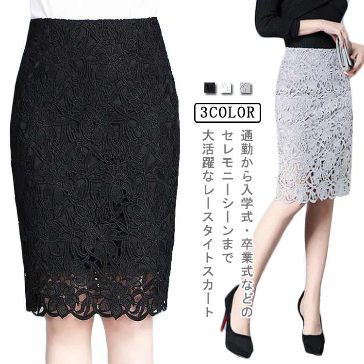 【送料無料】レーススカート タイト 花柄 フラワー レース タイトスカート レディース 膝丈 裏地付 着やせ 細見え エレガント フェミニン 大きいサイズ 春夏 秋冬 きれいめ OL 通勤 結婚式 お呼ばれ 二次会 セレモニー