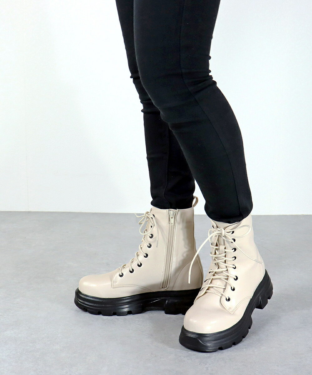 シンプルデザインで合わせやすいおしゃれな8ホールレースアップブーツは、これからの季節に大活躍間違いなしのおすすめアイテムです!!■カラー:ブラック、アイボリーアウトソール幅 10.2cm全長 27.0cm高さ 21.0cm履き口 24.5cmヒール 5.0cmソールの厚さ 2.9cm片足重量 370g※( )で表記されている数字はヌードサイズです。