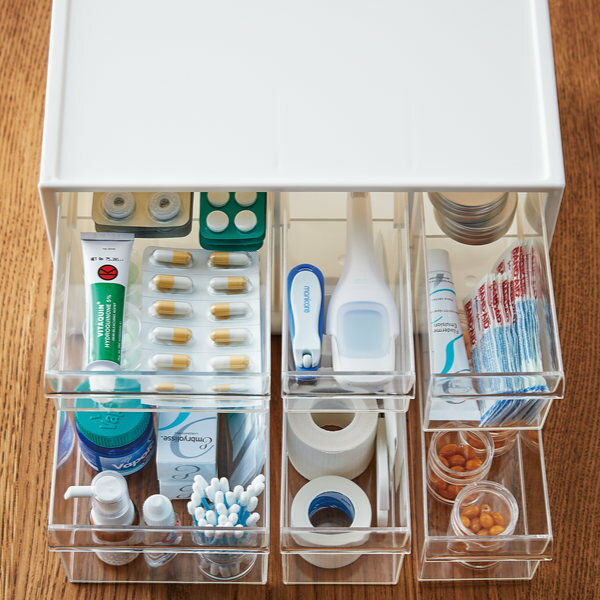 商品詳細一目瞭然で取り出しやすい透明の引き出しなので中身が見やすく、お目当ての物をすぐに取り出すことが出来ます。