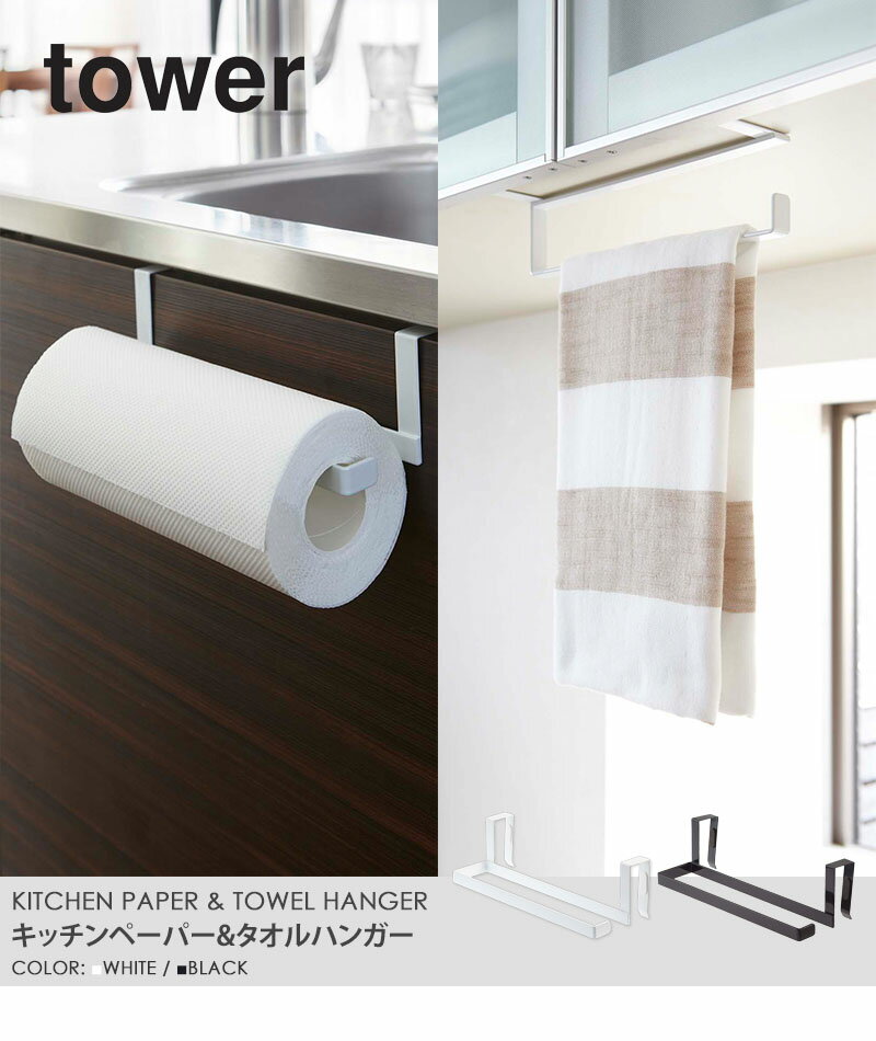 COLOR SIZE 商品名 キッチンペーパー&タオルハンガー tower/タワー カラー ホワイト/ブラック サイズ 本体:約幅24.5cm×奥行9cm×高さ7cm 材質 本体:スチール(粉体塗装) 仕様 耐荷重:約500g 対応サイズ:直径11cm×幅24cmのキッチンペーパーに対応。