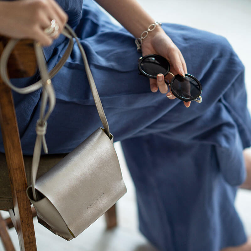 ※ラッピング対応はこちら>>> HAYNI ヘイニ 「Miril ミリル」 HAYNI.完全オリジナルの牛床革素材 遊び心満点ショルダーバッグ ●ミニサイズの上質素材ショルダーバッグ ●内装のカラーを是非ご堪能下さい ●イチオシは「いぶし銀」風情の大人シルバー ●マグネット開閉がとにかく便利 <コーディネート> ミニマリストにぴったりのシックで大人っぽい ショルダーバッグです。
